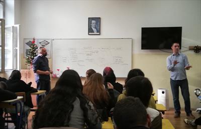 Предавач је био Лука Ставановић, дизајнер ентеријера, којег смо упознали на овогодишњем Сајму намештаја. Током веома инспиративног предавања које је одржао за наше ученике, упознао нас је са развојем своје каријере и оснивањем предузећа Sol Baby Furniture које ствара јединствен намештај за бебе а који спаја софистициран дизајн, природне материјале и вишенаменску функционалност.